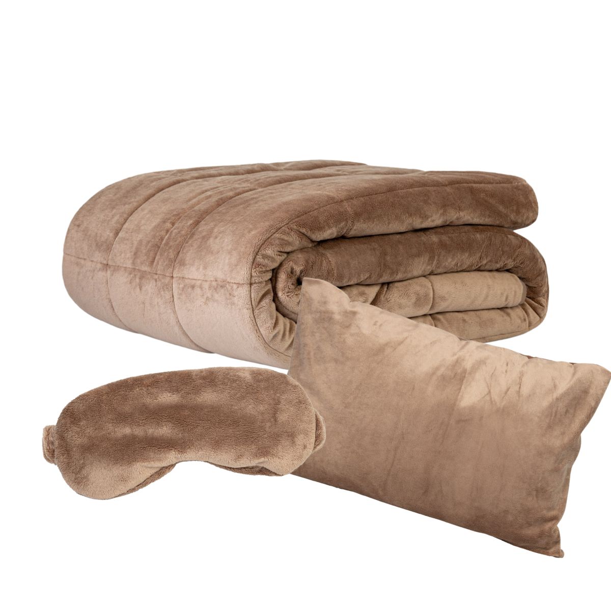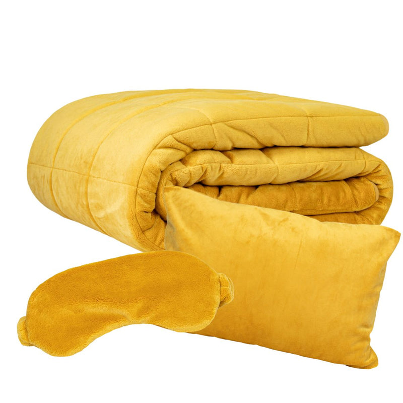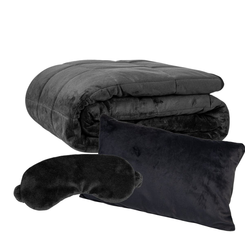 Onze Wrap Ninja Limited Edition Bundel biedt ultieme luxe met een Wrap Ninja verzwaringsdeken, een bijpassend slaapmasker en een kussen. De deken, zonder hoes en gemaakt van hoogwaardig luxe fluweel, voelt ultrazacht aan en is perfect voor ontspannen avonden op de bank of om heerlijk onder te slapen. Verwen jezelf of een ander met deze exclusieve bundel die comfort en stijl combineert.